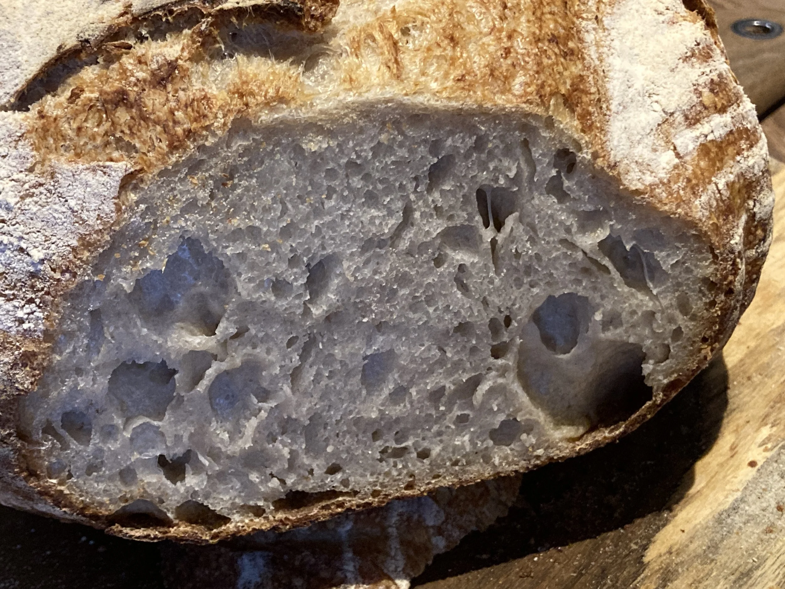 Het resultaat is dit prachtig, simpel tarwebrood met een verrukkelijke korst en een lekker sappig kruim.