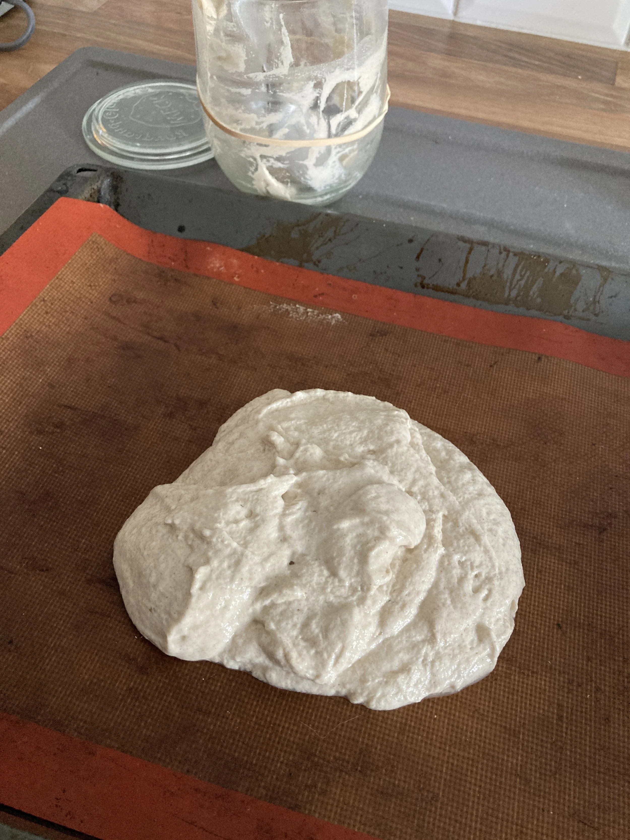 Van de week heb ik op Reddit een recept van user u/ariana550 gelezen waarin zij uit oude desem een heerlijk ontbijt maakte. Toen ik haar recept nagebakken heb vond ik het te taai en niet voldoende knapperig, ik heb het daarom nog even bijgewerkt en dit is het resultaat: